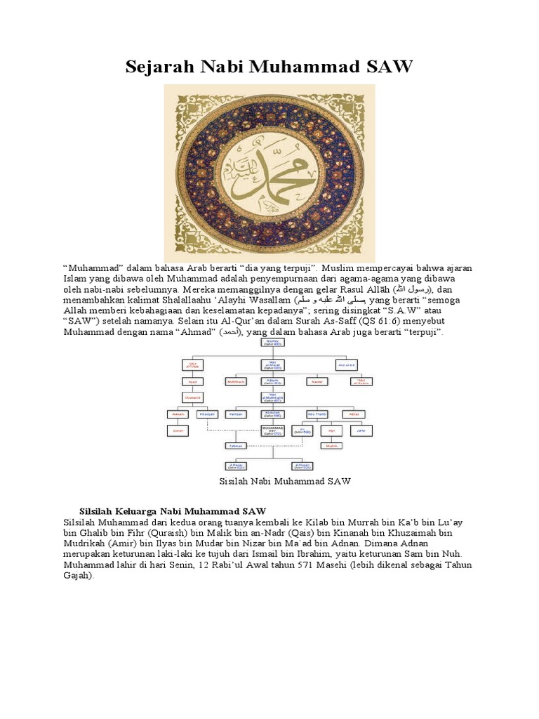 Silsilah nabi muhammad saw by visnu candra 802 views. Nabi muhammad saw dilahirkan di makkah pada hari senin 12 rabiul awwal tahun gajah yang bertepatan dengan bulan agustus 570 m di rumah kakeknya abdul muttalib. Silsilah nabi muhammad ﷺ hingga nabi adam alaihissalam. Bahkan pada periode tahun 70an telah dirilis sebuah film karya antory quin dengan. Silsilah keluarga nabi muhammad saw :